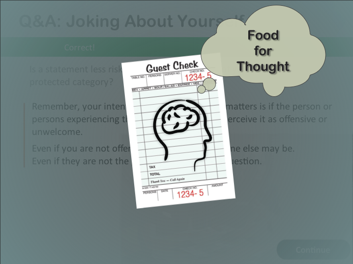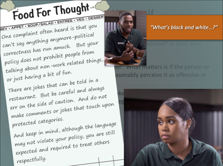 Doing the Right Thing was created for a US-based restaurant group, and features video vignettes to illustrate workplace interactions in a food service environment.